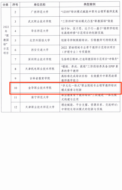 金职院案例入选2022年“职教国培”示范项目工作案例