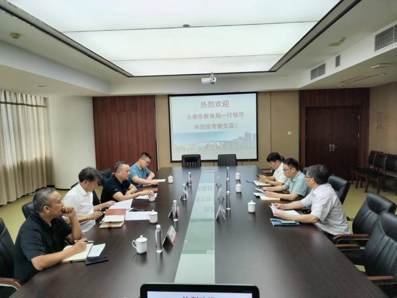 为加深校地合作,6月16日,永康市教育局局长谢滔带领永康市教育局党委委员、职技校校长王钟宝,永康市职技校副校长胡赞,永康市教育局办公室相关负责人等一行4人来我校考察交流。副校长张雁平接待了来访客人,机电学院负责人陪同接待并参加座谈。