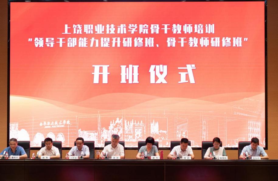 7月5日,上饶职业技术学院骨干教师培训暨“领导干部能力提升研修班、骨干教师研修班”在我校顺利开班。上饶职业技术学院书记刘锋,我校总督学成军出席了开班仪式,继教处、机电工程学院和信息工程学院相关负责人以及上饶职院的52名中层以上干部和专业骨干教师参加了开班仪式。