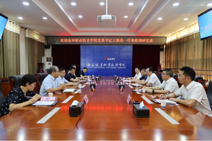 交流会上,周岩简要介绍了西安航空职业技术学院办学特色、航空类专业建设等情况。王振洪介绍了学校智能化精密制造产教园和航空类专业建设情况,指出航空工程学院筹建是学校谋划的重点工作之一,未来学校将进一步发挥装备制造类专业优势,加强与航空院校、企业等的深入合作,建设航空产科教一体化平台,引领金华航空产业发展。双方就航空产科教一体化平台建设、校际合作交流等方面达成初步意向。会后参观考察了西航职院航空工程技术中心、航空科技馆等实训基地。