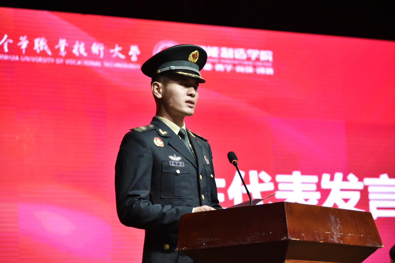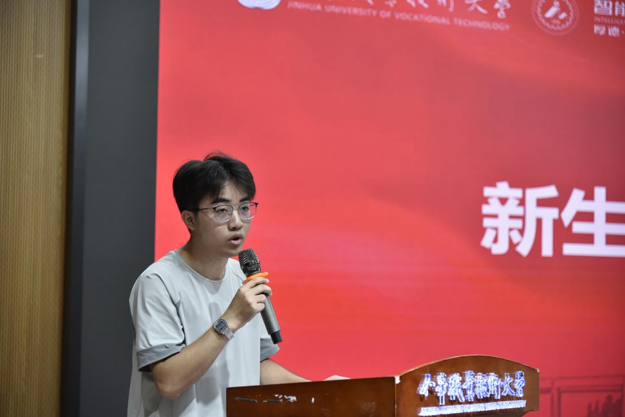 优秀老生代表张泽涛同学,作为参加过纪念中国人民抗日战争暨世界反法西斯战争胜利80周年大会的退伍兵,他分享了自己的从军经历,并表示退伍不褪色,复学续新篇,鼓励新生们,要学会独立思考,勇于尝试,不怕失败;深入学习前沿技术,掌握过硬本领,用实际行动践行“强国有我”的青春誓言,为制造强国建设贡献自己的一份力量。