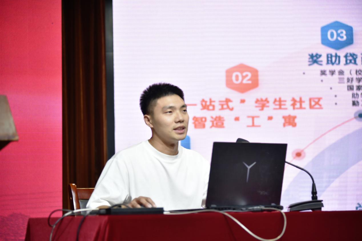 学院学工办负责人江梅芳、诸葛鲁凯老师为新生们介绍了学工办团委的主要职责。同时,提醒同学们在校期间遇到问题和困惑,都可以和辅导员联系沟通,他们“24 小时待机,365 天在岗” 的服务模式,是除了班主任外,学生最亲近的“成长伙伴”。
