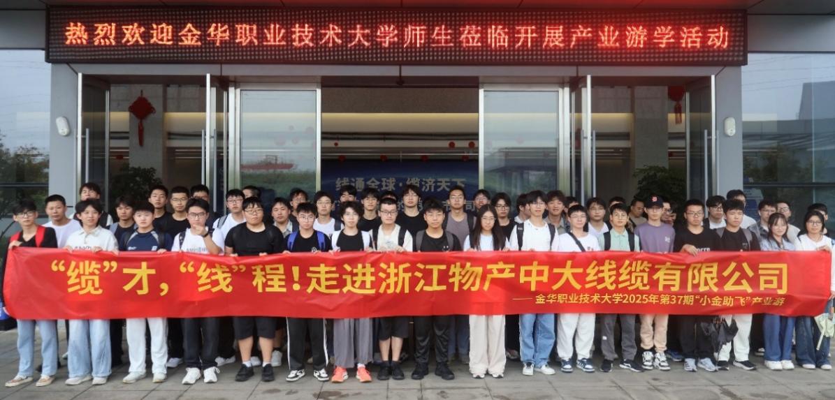 为扎实推进2026届毕业生就业服务工作,精准对接产业需求,促进学生高质量就业,10月18日,在学校就业指导处的大力支持下,智能制造学院组织全院50余名学生代表前往浙江物产中大线缆有限公司开展第37期“小金助飞”产业游活动。