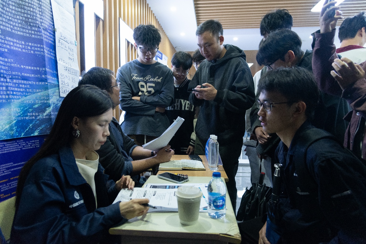 招聘会现场气氛热烈,来自智能制造学院和航空工程学院的数百名毕业生积极咨询、投递简历、参与初面。上海航天设备制造总厂招聘负责人表示:“一上午就收到近百份简历,不少学生专业匹配度高,实践经历丰富,令人印象深刻。”智能制造学院机制专业的大三学生汪同学表示:“这场招聘会是我们迈向职场的重要窗口,与众多优质企业的深度对接,让我们对行业用人标准和发展趋势有了更直观的把握,也为我们在毕业季的求职之路和职业规划注入了更强的信心与方向感。”