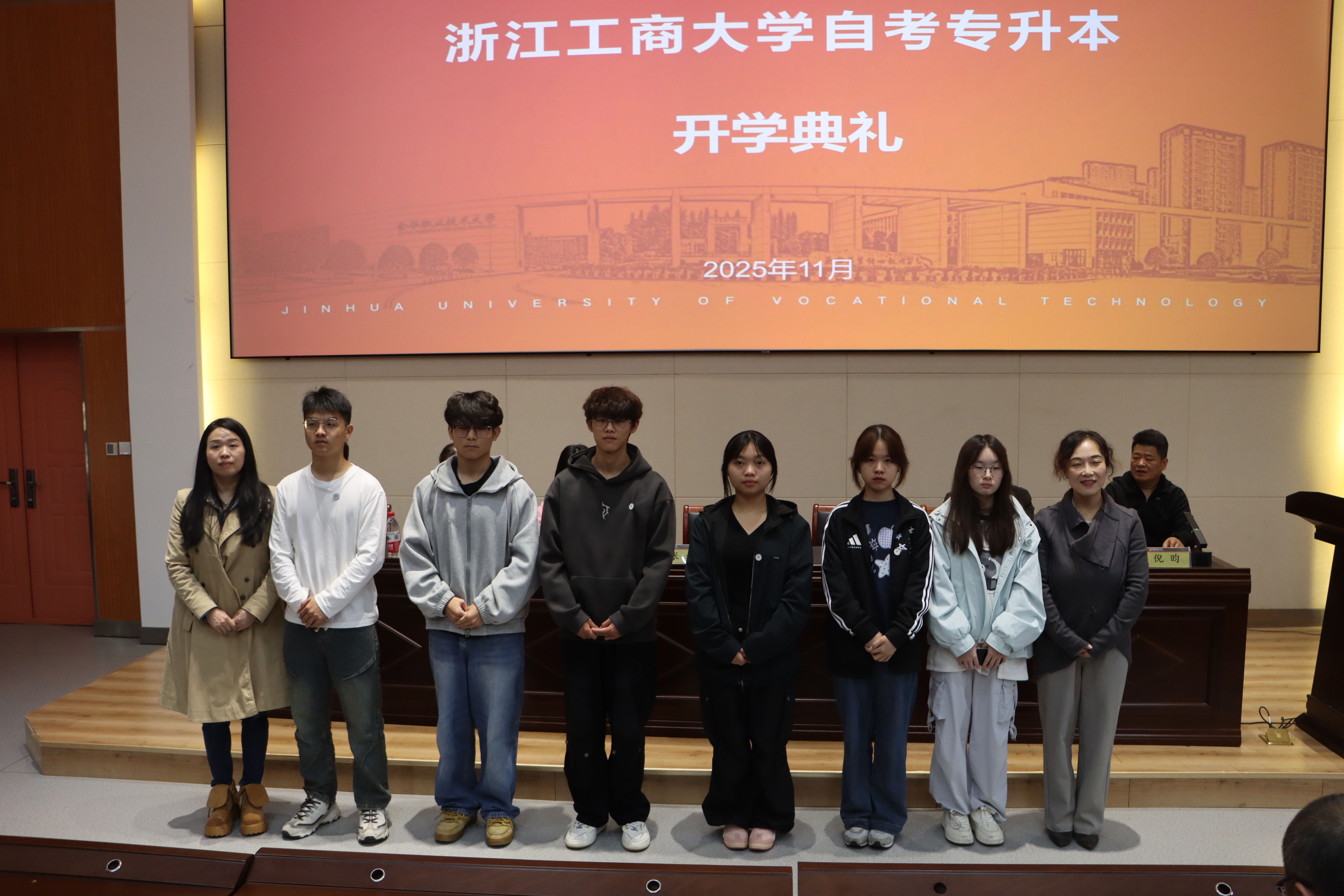 2025年11月12日,金华职业技术大学与浙江工商大学共同举办的2025级自考本科助学班开学典礼在西教学楼2号楼416教室隆重举行,武义学院同学在武义校区分会场观看直播。浙江工商大学继续教育学院副院长张利,金华职业技术大学成人教育学院负责人,智能制造学院、航空工程学院、信息工程学院(怀卡托国际学院)、商学院、文旅学院相关负责人,浙江工商大学自考办负责人,浙江吉博教育科技有限公司网络学习平台教务老师,以及2025级全体新生和相关班主任出席。