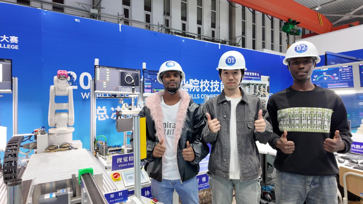 2025年11月9-10日,2025年世界职业院校技能大赛排位赛在天津轻工职业技术学院落下帷幕,经过激烈角逐,由金华职业技术大学智能制造学院教师徐德勇参与指导,电气自动化专业学生计汉峰和卢旺达理工学院穆桑泽学院 RP-Musanze College 学生Muhire Protais、UWITONZE Danny组成的代表队在 16个争夺赛金奖团队中获得2025年世界职业院校技能大赛排位赛(国际组)第一名,充分体现了职业教育国际化合作的显著成果和“金职范式”。