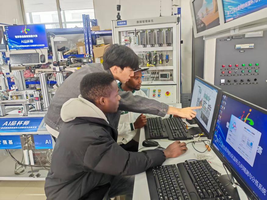 该团队作品《AI品杯师-保温杯内胆智检双维全链数字化解决方案》聚焦金华本土保温杯行业质量检测痛点,融入机器视觉、AI技术大幅提升保温杯内胆合格率,节约生产成本。备赛期间,学校领导高度重视,智能制造学院统筹协调,围绕产业痛点、方案设计、产线改造等关键环节开展多轮专题研讨,组建多专业保障团队,突破语言障碍和技术壁垒,书写了国际合作与技能创新的精彩篇章。目前,已有60名卢旺达青年在金职学习,这不仅充分体现了金职大践行“产教融合、大国智造”的教学理念,更是中国职业教育国际合作的生动实践。
