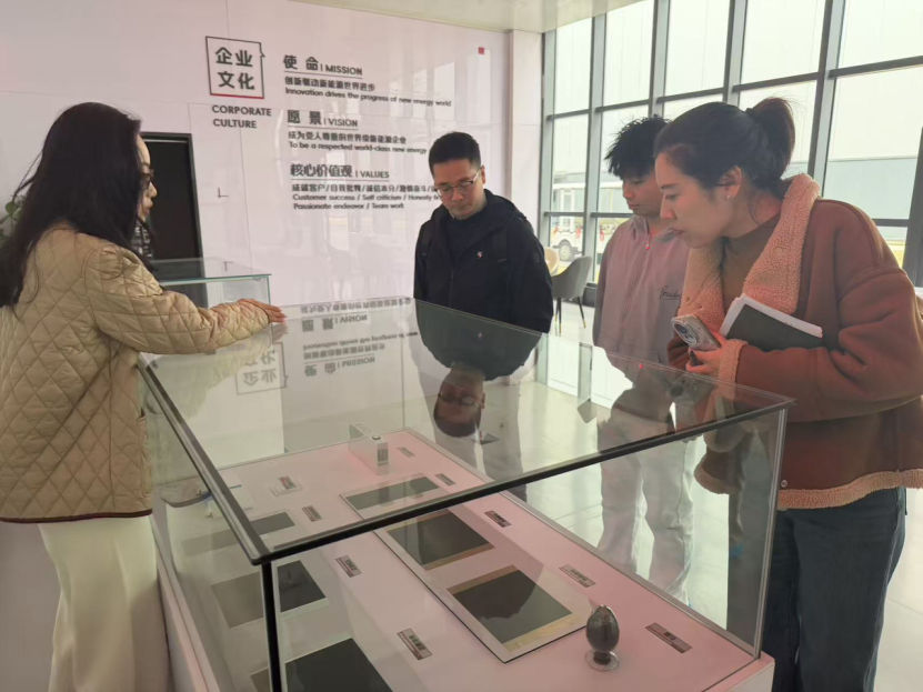 团队先是抵达位于金华新能源汽车产业园的欣旺达新能源产业基地。作为金华地区首家动力新能源规模企业,欣旺达专注于新能源动力电池及储能系统的研发与制造,填补了区域相关产业链空白。企业负责人介绍了公司在快速发展中面临的技术迭代挑战与人才迫切需求,并重点阐述了目前推进的“校企合作培养+人才定向培养”“校企技能班联合培养”两类主要合作模式。