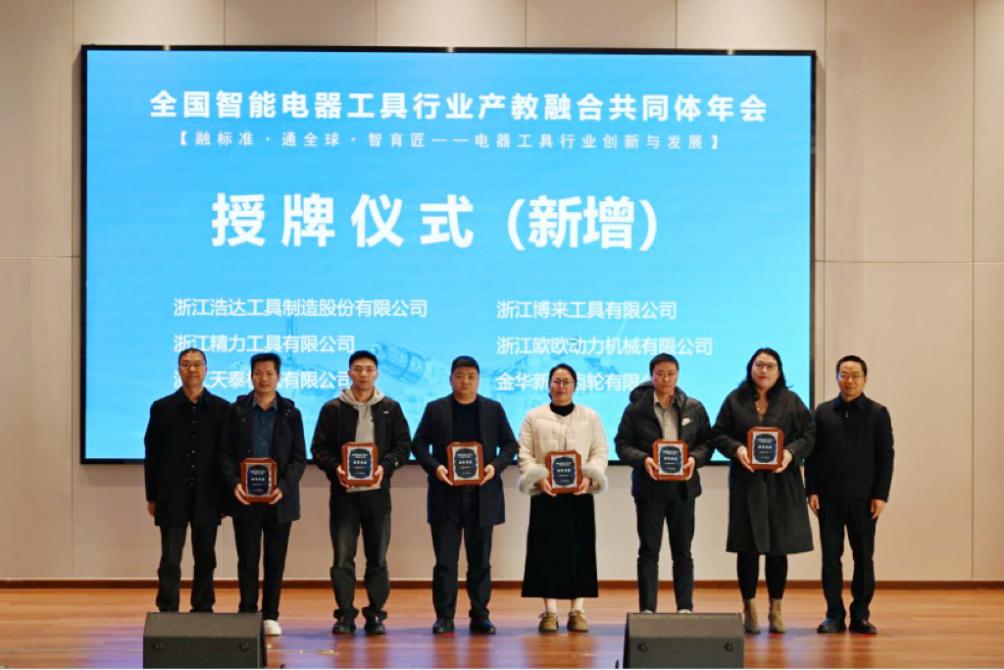 12月20日,“融标准·通全球·智育匠——电器工具行业创新与发展”为主题的2025年全国智能电器工具行业产教融合共同体年会在金华职业技术大学成功举办。武义县人民政府副县长徐宏亮,武义县经济商务局局长何政伟,浙江脉链品冠科技有限公司董事长徐伟强,宝时得科技(中国)有限公司总工程师、IEC国际标准委员会委员丁玉才,金华职业技术大学副校长朱钢国出席会议。共同体各成员单位代表、武义电器工具企业代表、金华职业技术大学师生代表参加会议。