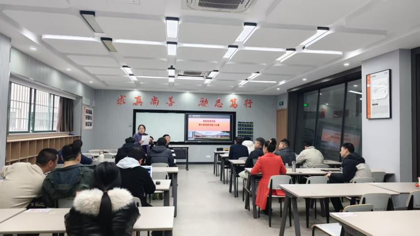 智能制造学院院长戴欣平作总结讲话,他强调,青年教师是学院教学发展的中坚力量,在教学过程中要注重各类教学资源的整合与高效利用,借助AI技术赋能课堂教学,创新教学模式;同时要强化课堂互动设计,加强与学生的课堂交流,提升课堂教学效率,切实提高教学质量。
