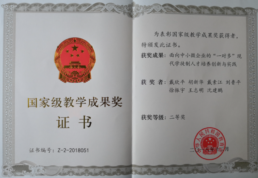 国家级教学成果奖二等奖证书