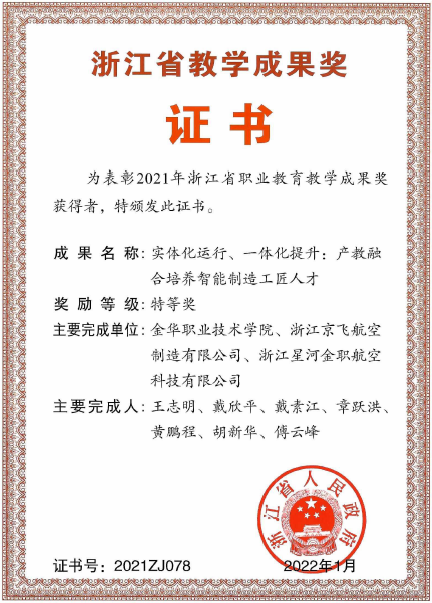 与GF、ABB等世界500强企业以及西子、今飞等规上企业共建智能化精密制造产教园,探索实践“实体化运行,一体化提升:产教融合培养智能制造工匠人才”,获国家级教学成果奖一等奖和省级教学成果奖特等奖;深入开展“一对多”现代学徒制人才培养模式,获国家级教学成果奖二等奖。建设经验入选教育部产教融合校企合作典型案例和机械行业职业教育产教融合校企合作典型案例。