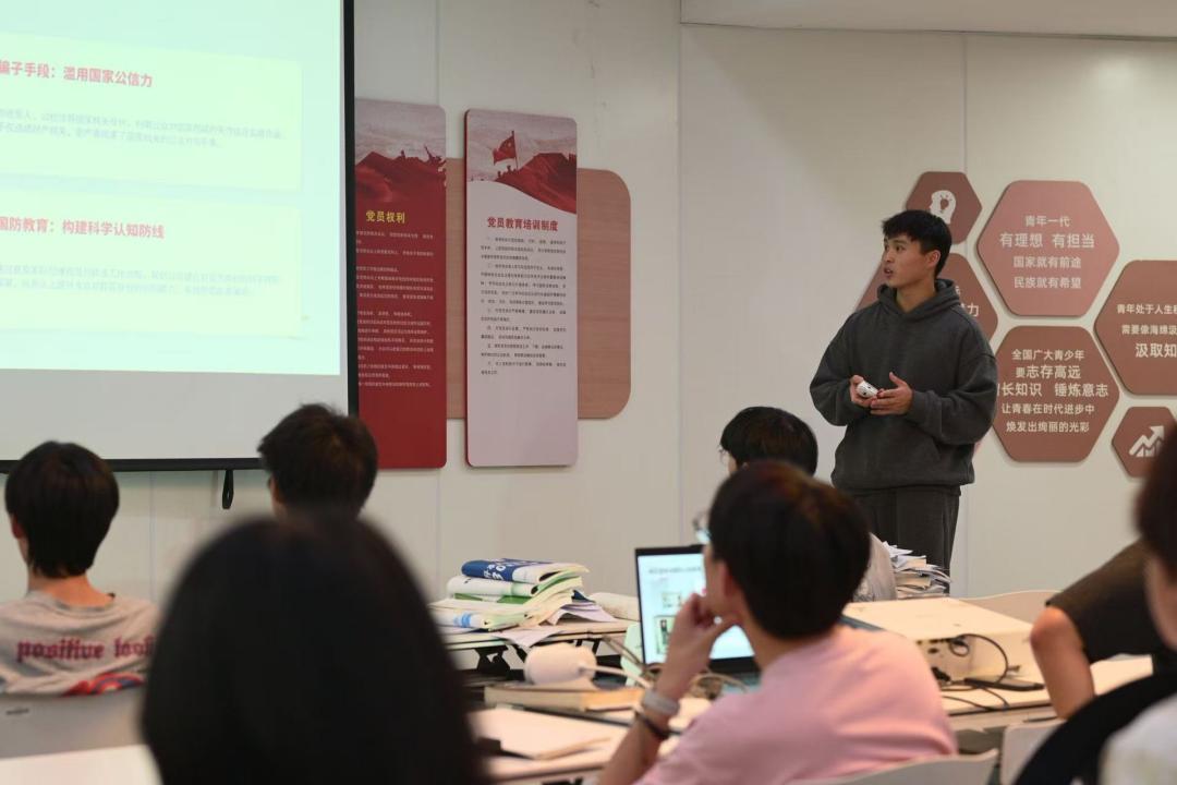 在“一站式”学生社区服务中心,“迷彩”育人工作室及反诈工作部面向各班级安全委员举办了国家安全专题宣讲会。退伍学生代表结合自身军旅生涯,以“老兵”的独特视角,分享了总体国家安全观涵盖的政治安全、军事安全、网络安全等核心领域。宣讲中,退伍学生结合高校作为意识形态前沿阵地的特点,通过剖析网络泄密、学术渗透等真实案例,提醒同学们在日常交流、网络社交中时刻绷紧保密之弦,自觉维护国家利益与校园信息安全。