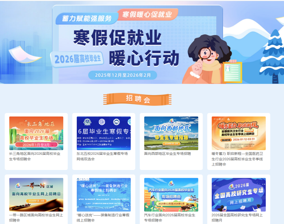 此外,学院还积极引导学生登录教育部国家大学生就业服务平台“寒假促就业暖心行动”专区,参与各类线上招聘活动,并关注生源地人社部门举办的返乡招聘信息,进一步拓宽就业渠道。