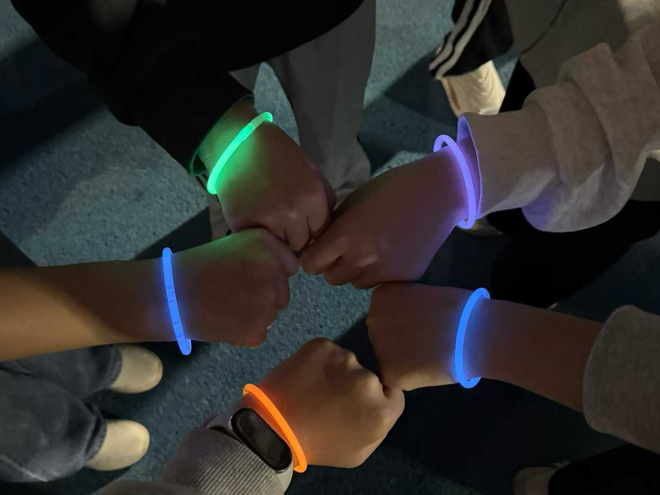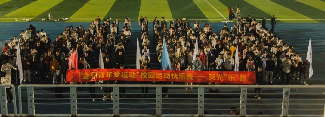 活动于当晚17时30分拉开序幕。虽然细雨微濛,但同学们的热情不减,有序领取荧光手环等装备后,来自智能制造学院、航空工程学院等8个学院的队伍迅速集结。闪烁的荧光与青春的面庞在夜色与雨丝中交相辉映,现场欢声笑语,氛围热烈。
