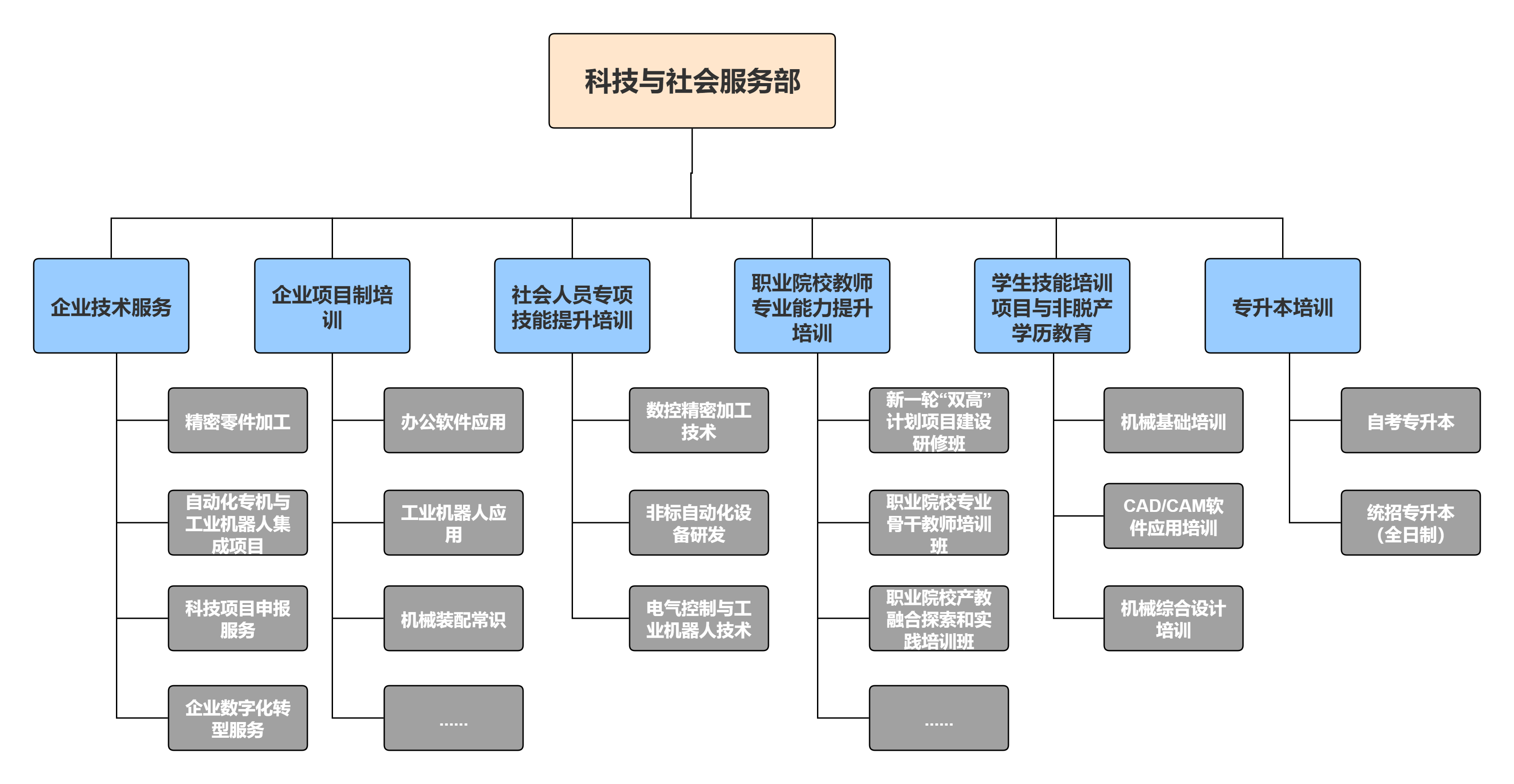 金华职业技术大学智能制造学院科技与社会服务部整合学院优质教学、科研及实训资源,面向社会、企业及广大学子,提供全方位技能培训、技术服务和教育提升等服务。本部门以服务区域经济发展为宗旨,以提升技术技能人才核心竞争力为目标,现已形成企业技术服务、企业项目制培训、社会人员专项技能提升培训、职业院校教师专业能力提升培训、学生技能培训与非脱产学历教育及专升本培训六大业务板块。